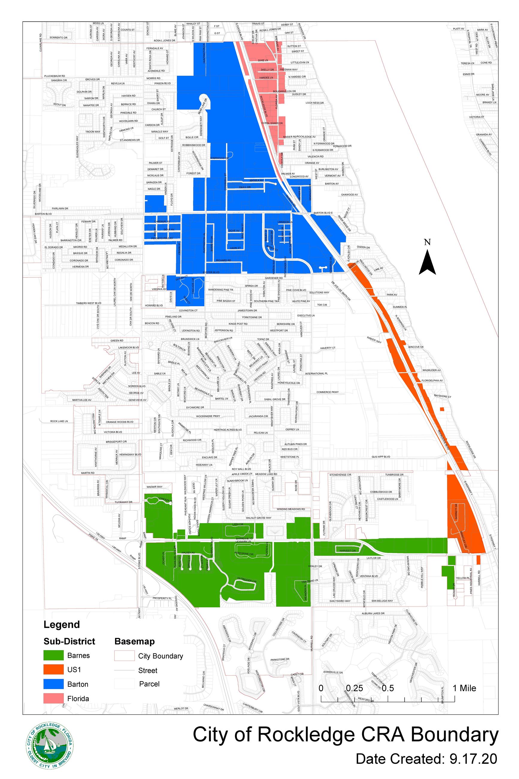 The Rockledge Community Redevelopment District covers about 2,794 acres and does not contain any portion of the City’s industrial area.